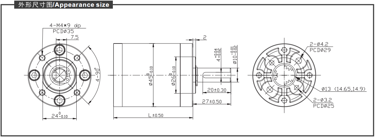 輸出軸直徑為Φ10.0mm,長(zhǎng)度可根據(jù)客戶要求定制