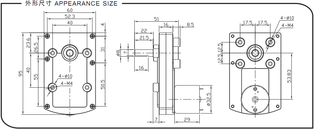 齒輪箱尺寸: 60mmx95mmxH23mm
