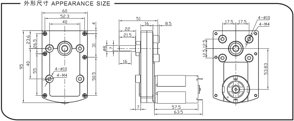 齒輪箱尺寸: 60mmx95mmxH23mm