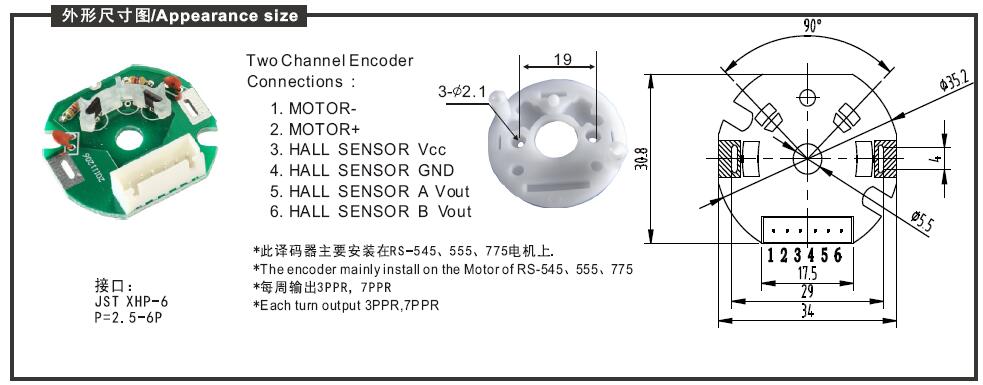 此編碼器主要安裝在RS-545、555電機上每周輸出3ppr、7ppr
